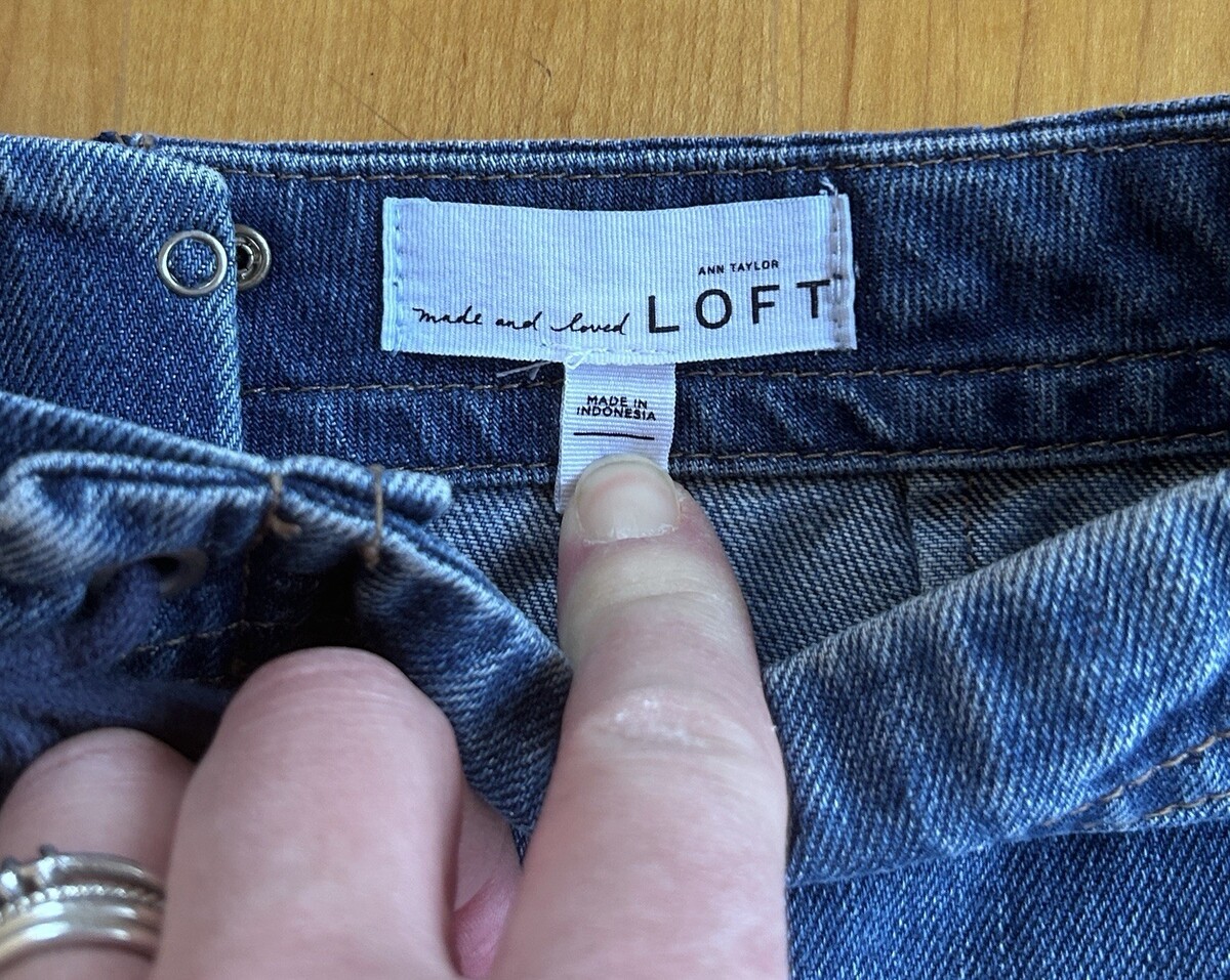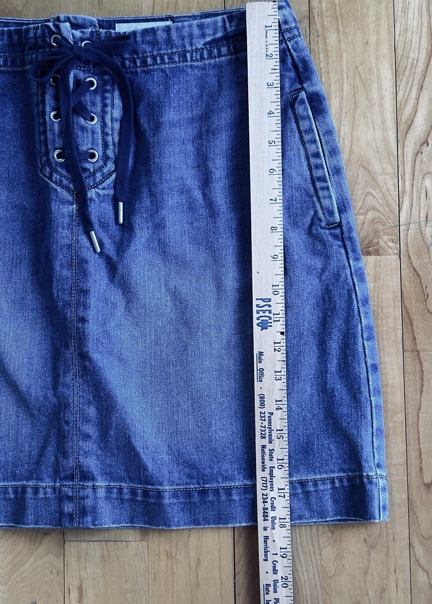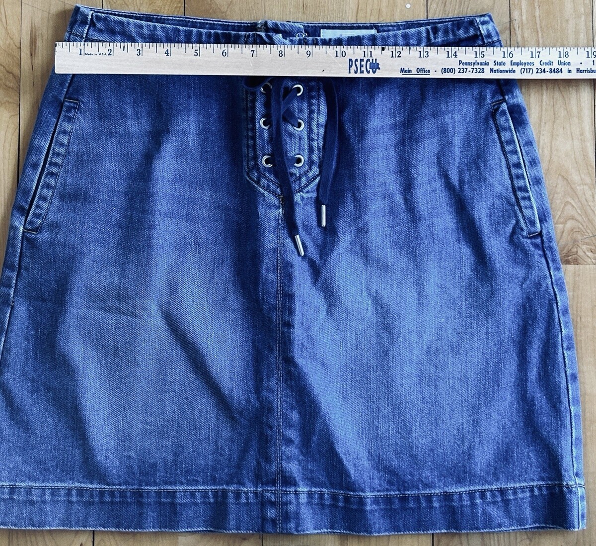 Ann Taylor Loft Denim Lace Up Mini Skirt Size 8 100 % Cotton