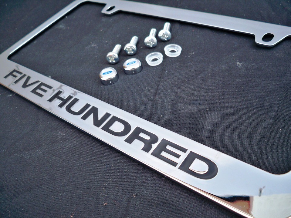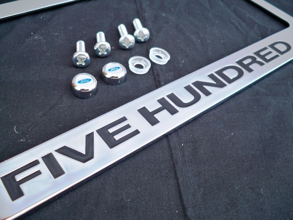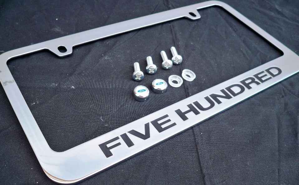 This listing is for one (1) chrome metal license plate frame with black lettering. Compatible with 2005-2007 Ford Five Hundred.