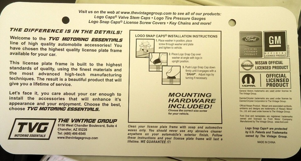 Top quality and finish frame. Well-chromed metal and very attractive screw caps with the logo of the car model. This frame will never rust. Please don?t put cheapo plastic stuff on your car, buy here and get the best for less!!