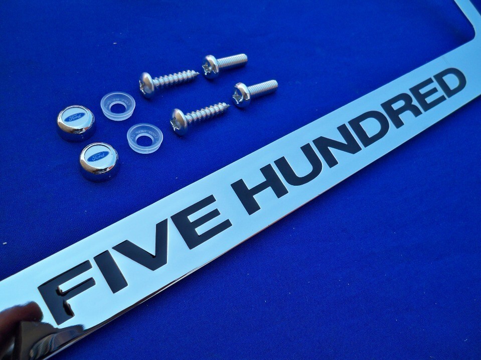 FORD FIVE HUNDRED CHROMED METAL LICENSE PLATE FRAME WITH FORD LOG SCREWS CAPS