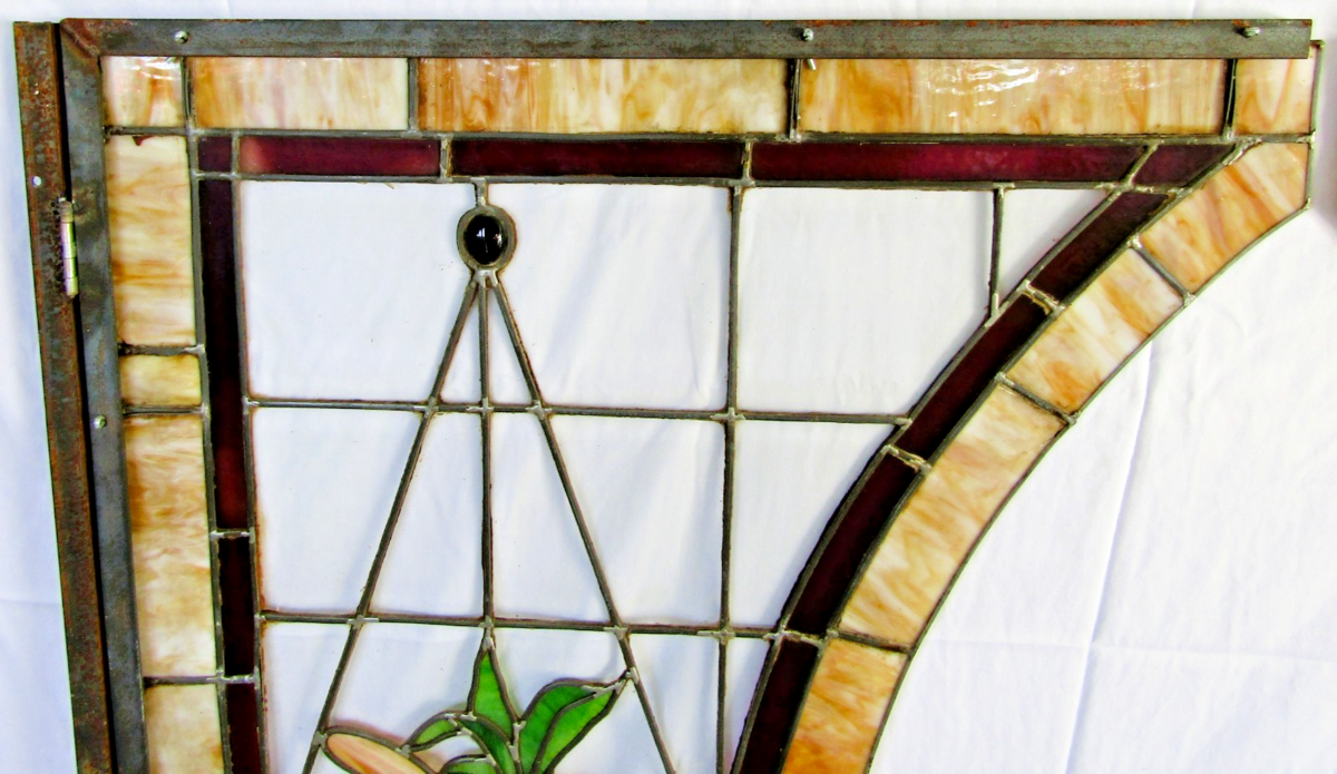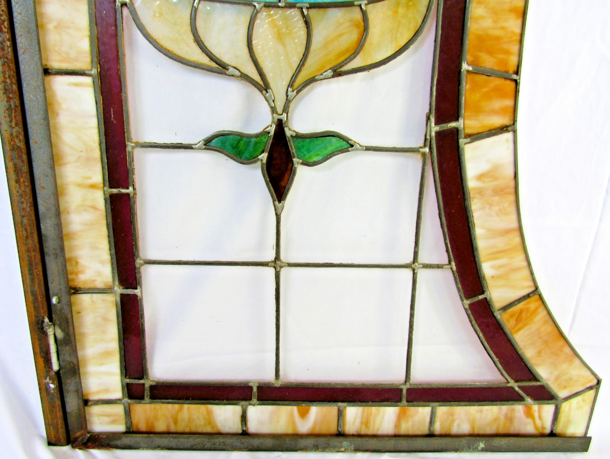 Pair Antique 19th-century Art Nouveau Arced Framed Leaded Stained Glass Windows