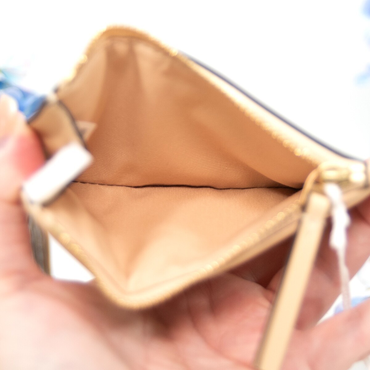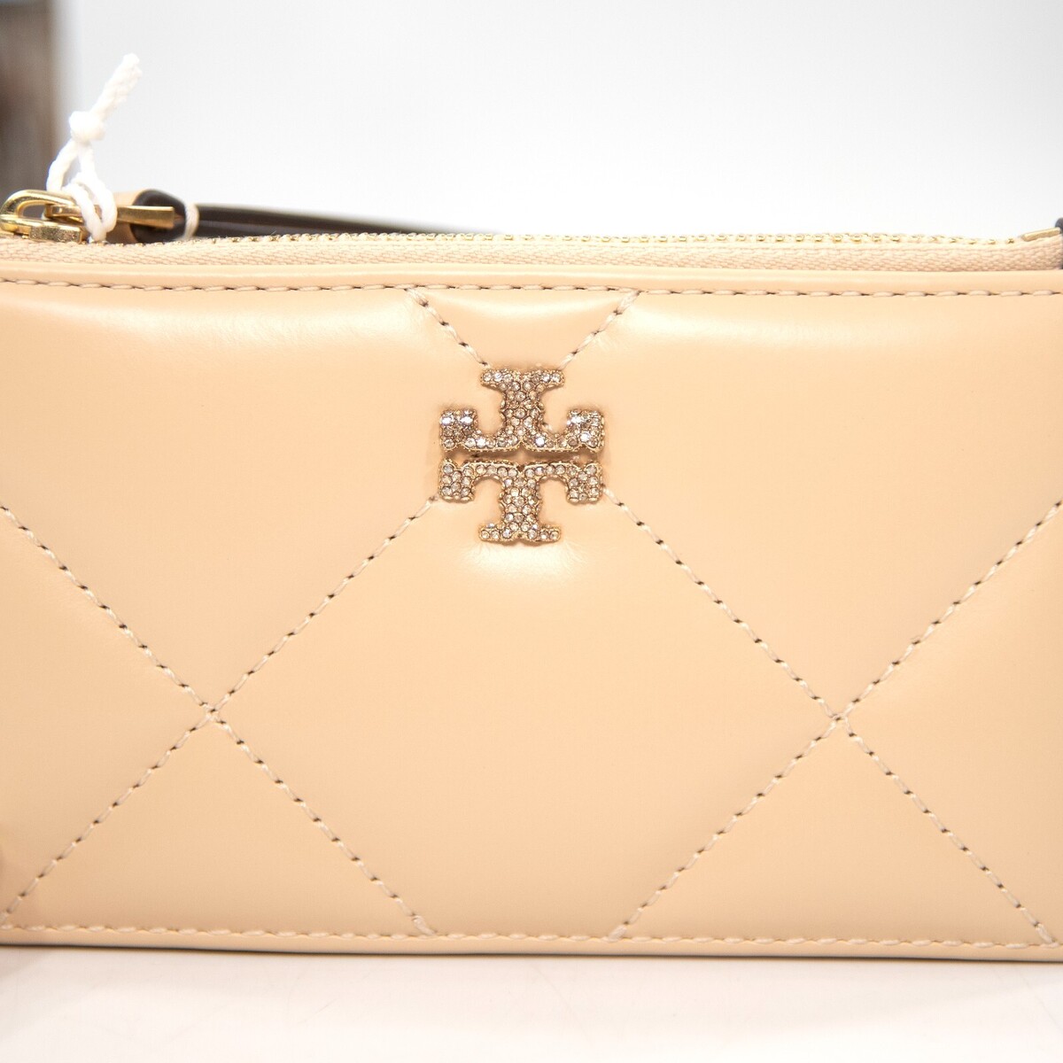 Tory Burch Kira Vanilla Leather Diamond Quilt Pave Logo Zip Card Case Wallet NWT