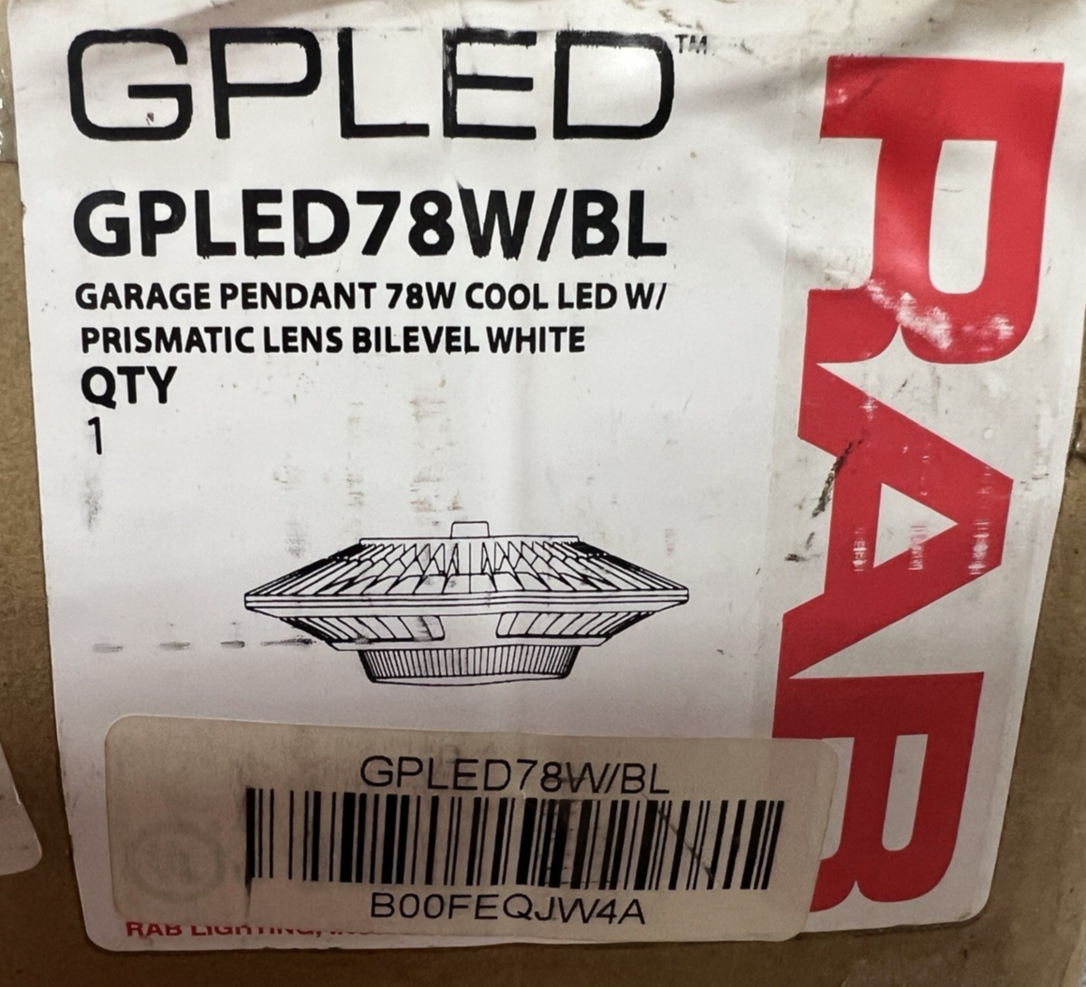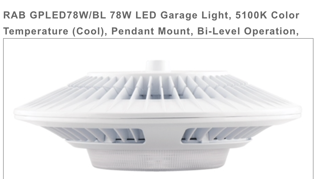 RAB GPLED78W/BL White 78W LED Garage Pendant and 49 similar items