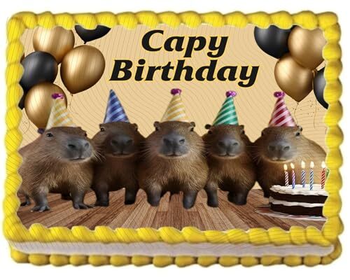 10" by 8" Capybara Capy Birthday Edible Image Birthday Party Cake Topper, Frosti