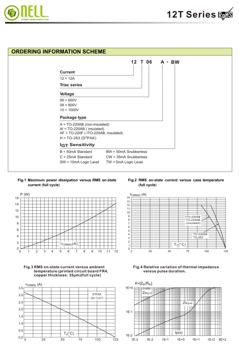 5 Pieces - 12T12AI NELLSEMI 1200V 12A TRIAC Insulated Tab TO-220AB-3
