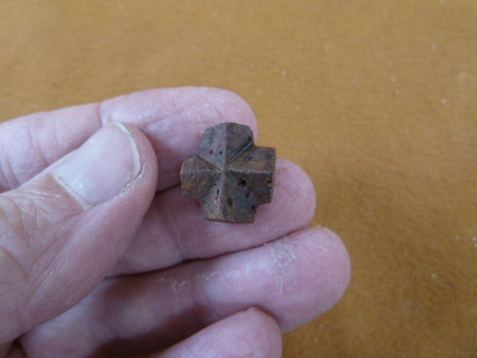We also drill these and wire as pendants after filing away the softer stone to show the cross more clearly (see our store).