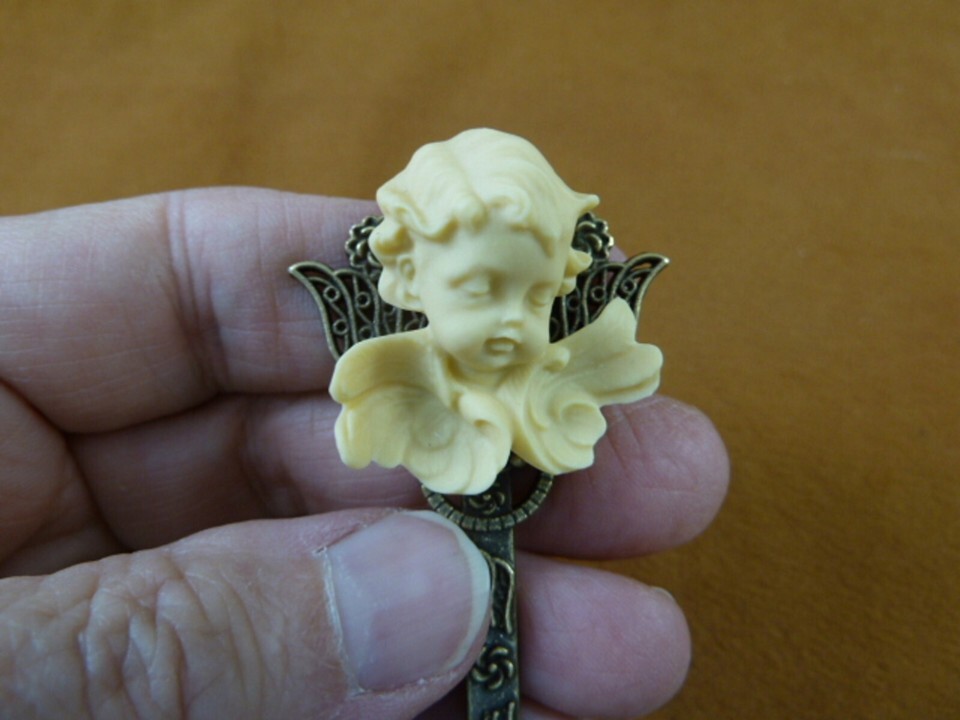 (cxs60-1) 3-D Cherub with curly wings CAMEO brass hair stick pin accessory