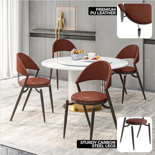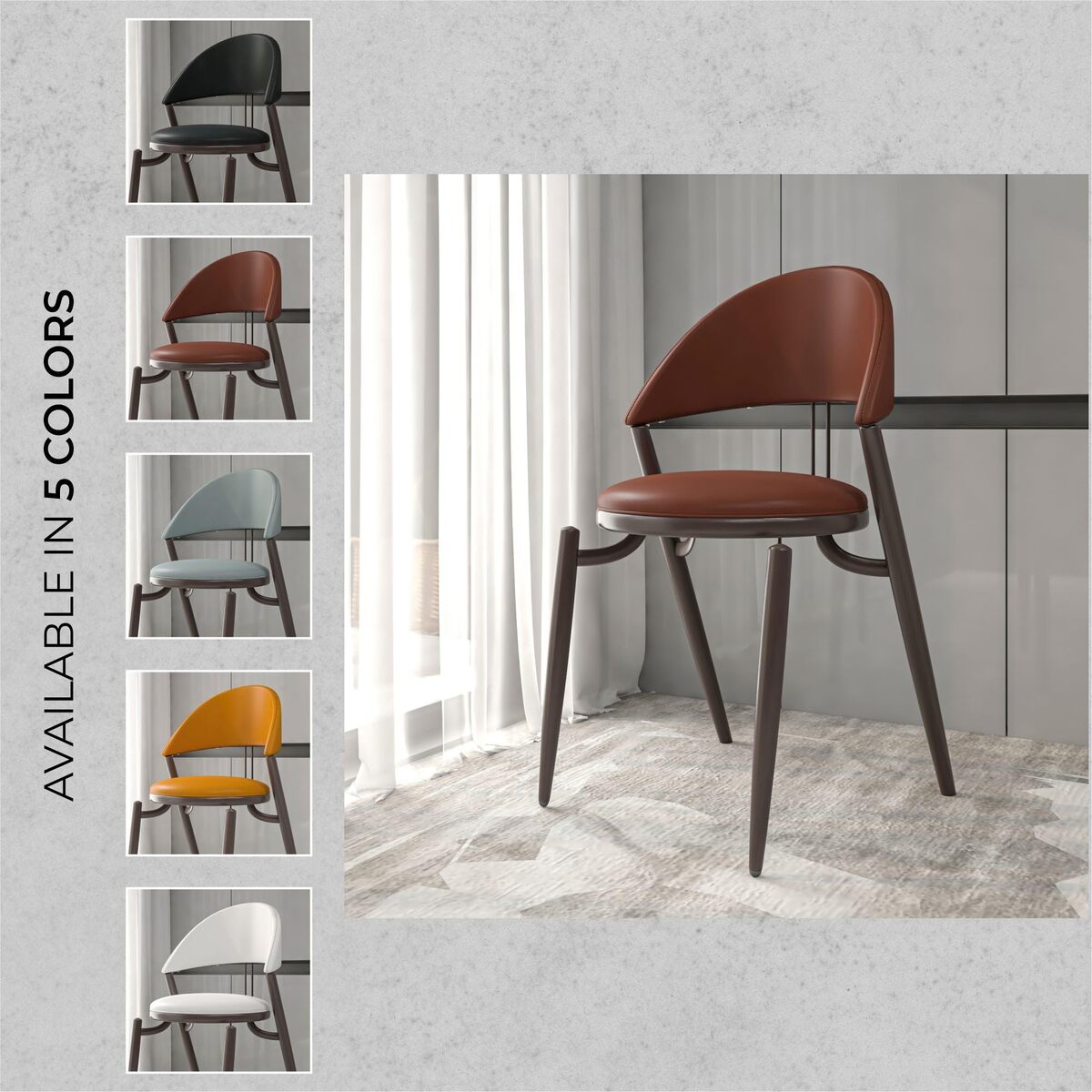 Product description: This set of two Black LeisureMod Venice Dining Chairs offers a steady, understated look that adapts well to different room styles without trying to stand out. The faux-leather upholstery has a smooth, comfortable feel, and the open-back frame helps the chairs sit lightly in the room, making them suitable for both small and larger dining areas. The black upholstery pairs neatly with the brown metal legs, giving the chairs a clean, grounded appearance that works well with modern, neutral, and mixed-material decor. Each chair provides comfortable seating for daily meals, casual gatherings, or moments when extra seating is needed. The metal legs provide stable support and hold up to frequent household use. The faux-leather surface wipes clean with minimal effort, making the chairs practical for everyday routines. With their compact, easy-to-move shape, they fit naturally into kitchens, dining rooms, or apartments where space is used carefully. This pair offers simple, practical seating that blends easily into different settings and supports daily living without feeling overdesigned.
