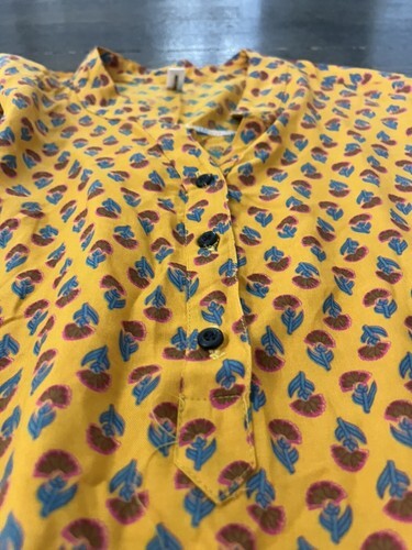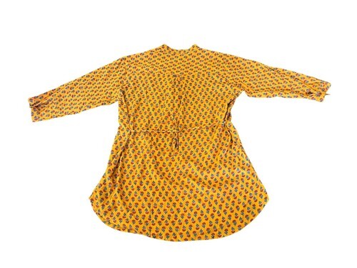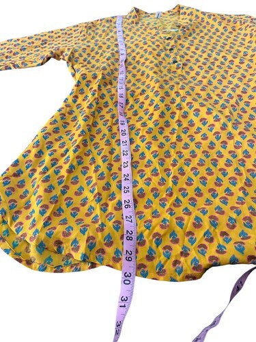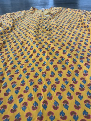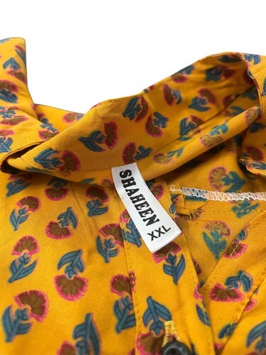 Vintage Shaheen XXL Floral Gold Mustard Tie Back Tunic Hippie Bohemian Mod India