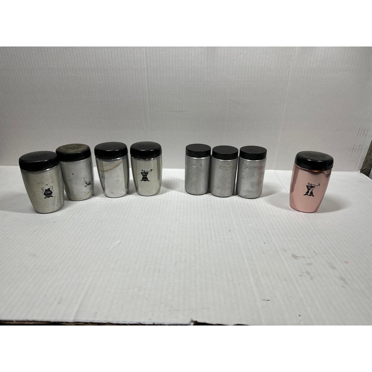 Set of 8 Vintage Metal Spice Jars West Bend Spun Aluminum Mixed Lot
