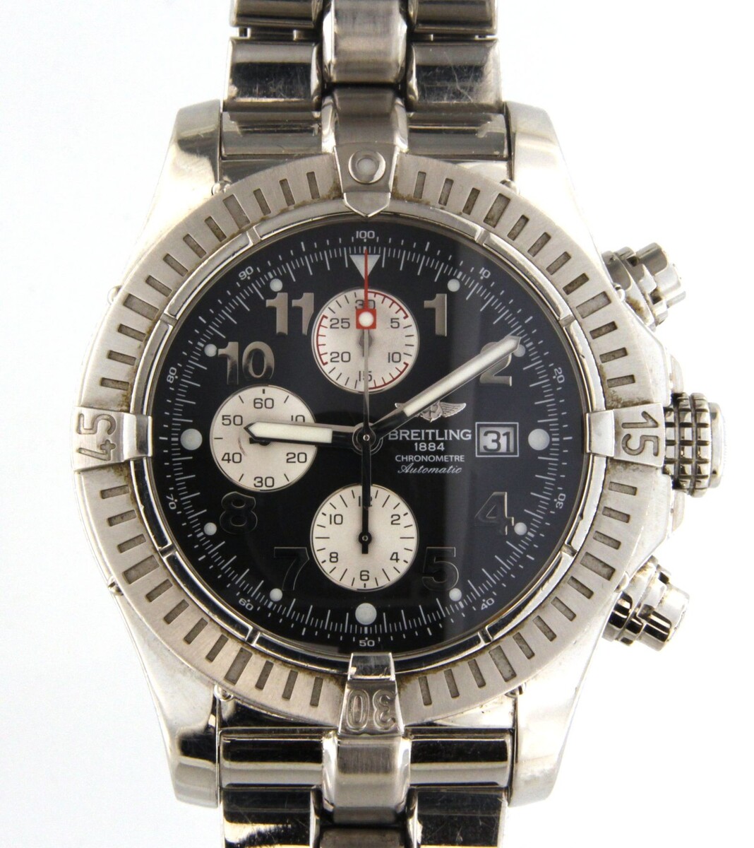 Type: Wrist watchBrand: BreitlingModel number: A13370 Super Avenger IIModel name: Super Avenger IICase width: 48mmWeight: 158.00Bracelet length: 7.75"Movement type: AutomaticCase Material: Stainless SteelBox included: noPaperwork included: noRunning: yesDial color: BlackBand material: Stainless SteelBezel Material: Stainless SteelCondition:Used