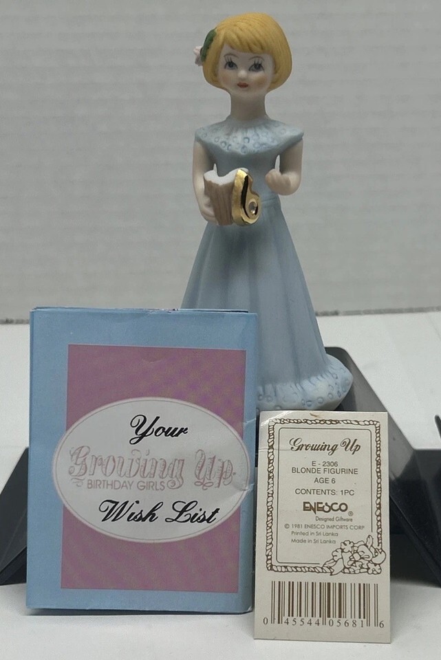 VTG Enesco Growing Up Birthday Girl Figurine Blonde Hair Age 6 Sixth Birthday