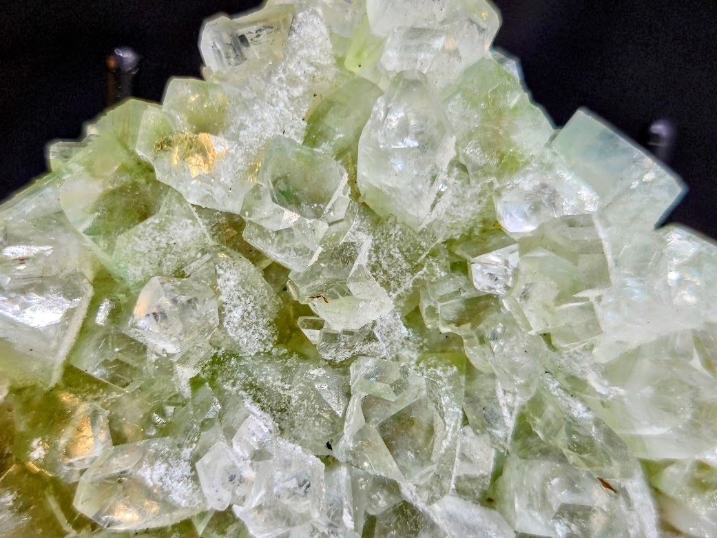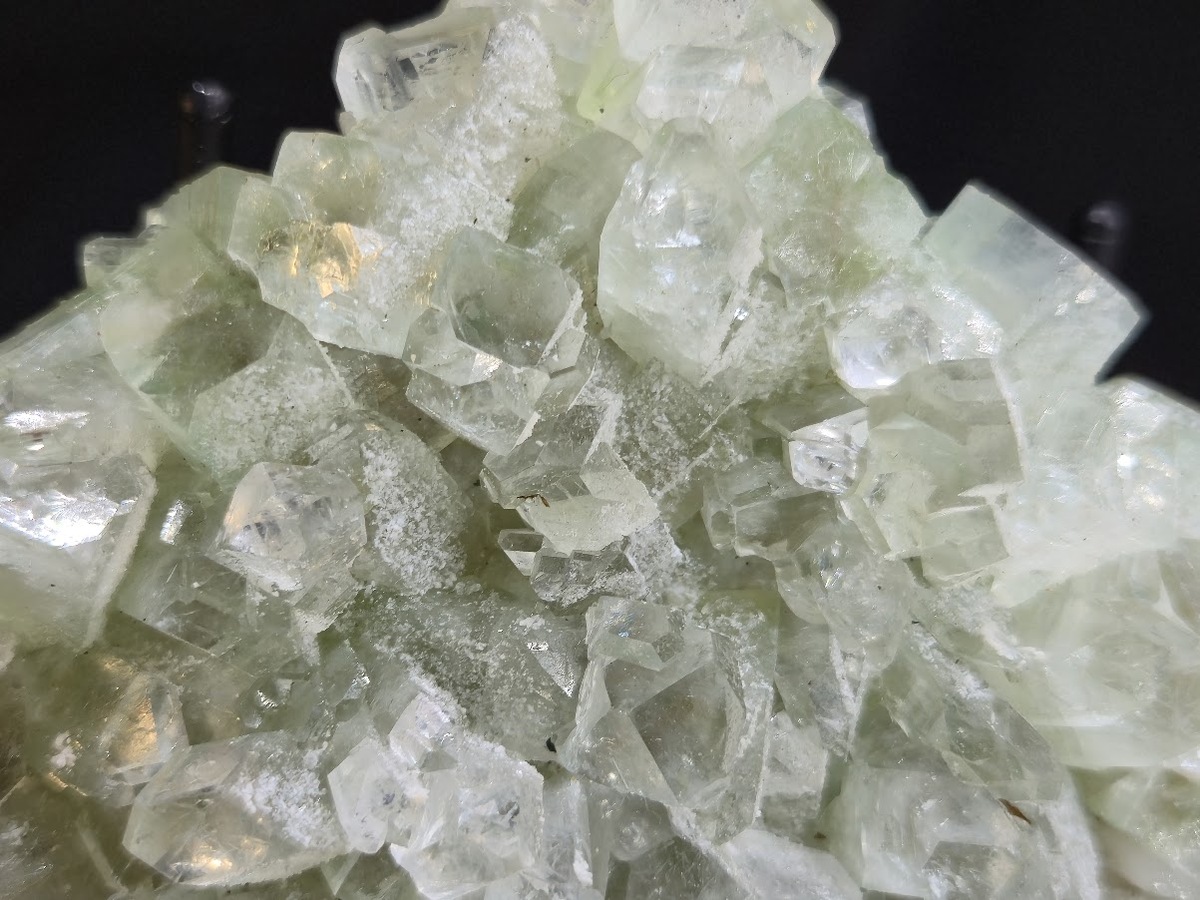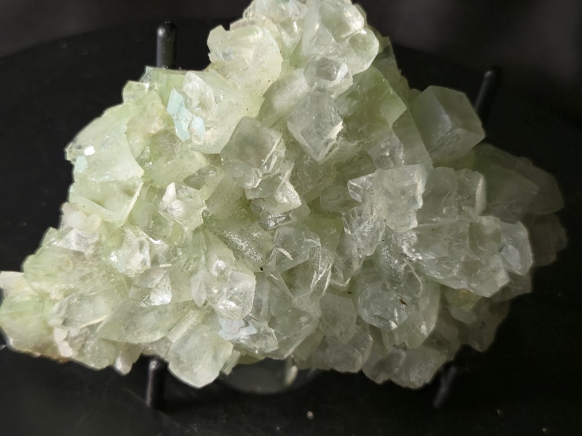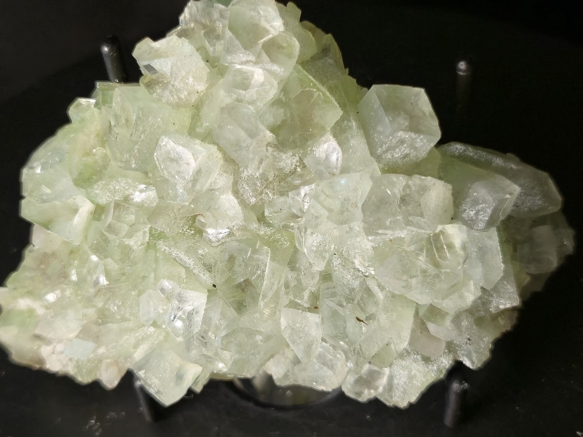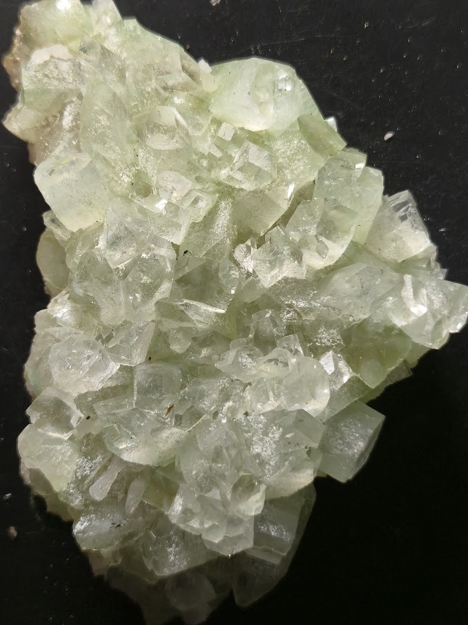 This are specimen is a cluster of Apophyllite mineral from India with prominent well formed crystals and delicate green hue.