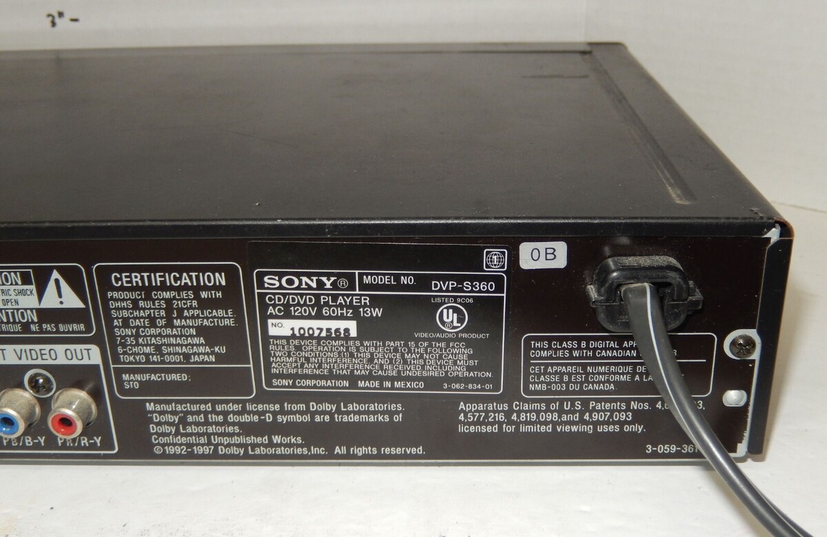 Sony DVP-S360 Dvd Player With Av Cable "No and 50 similar items