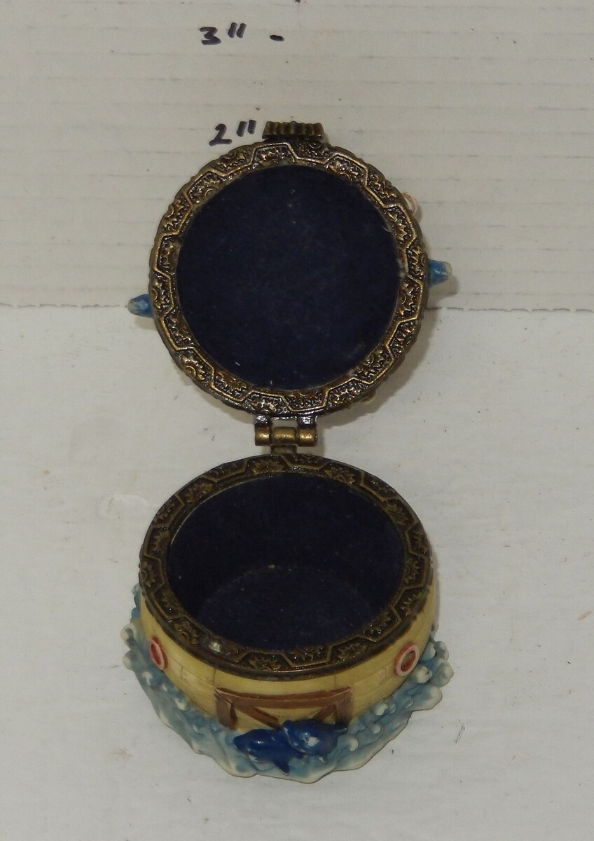 Noah's Ark Trinket Box Multi Color Blue Brown 3” Tall