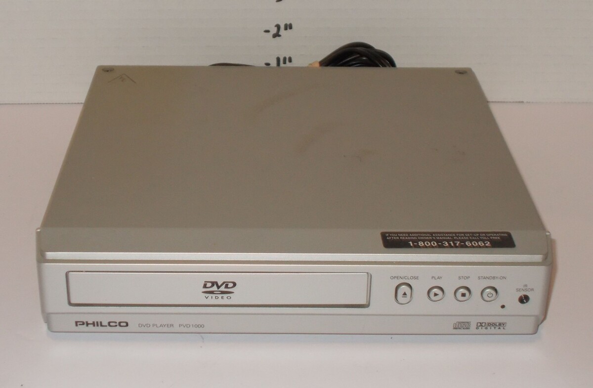For Sale is a Used but in good Condition Philco DVD Player PDV1000 with AV Cable "NO REMOTE". Does NOT include an Original Remote you will have to purchase one separately. An AV cable will be included. Video and TV Pictured is for Demonstration Purposes ONLY and is NOT included. Please see photos for more details. Please ask any and all questions prior to purchasing.. Fast same or next day shipping with delivery confirmation within the U.S. NOTE: SORRY BUT DO TO THE WEIGHT OF THE ITEM and SIZE OF THE BOX THIS ITEM ONLY SHIPS TO CUSTOMERS WITHIN THE UNITED STATES