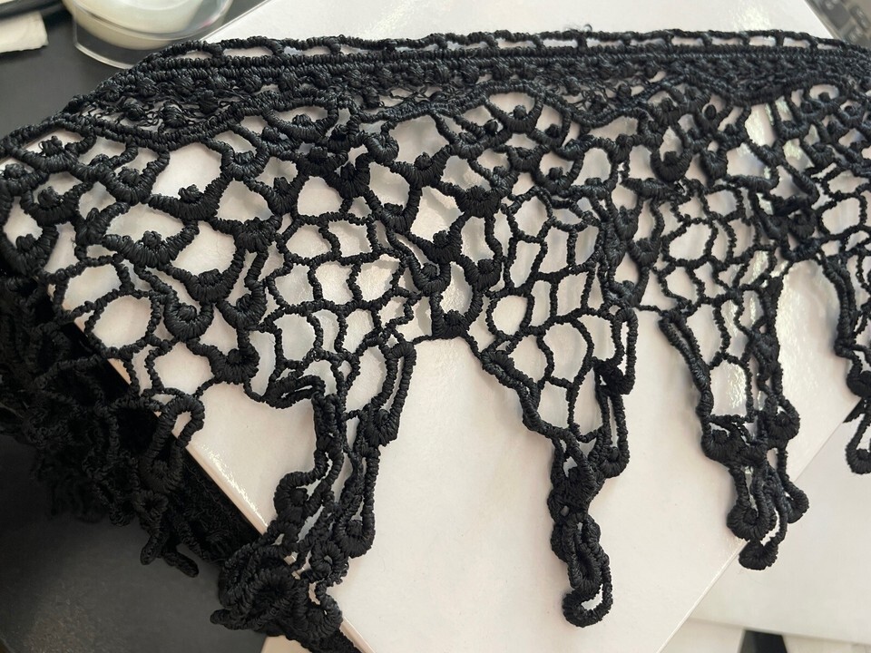 Black cotton delicate fringe crochet lace trim 5.5?.