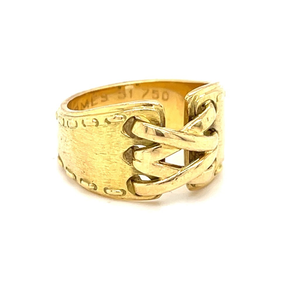 Authenticity Guarantee Hermes 18k Yellow Gold Corset Stitch Ring Size 6 10.6...