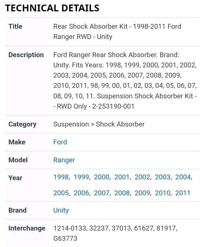 6-B0446H Rear Shock Absorber Set RWD Ford Ranger 98-2011 & Mazda B Free Ship