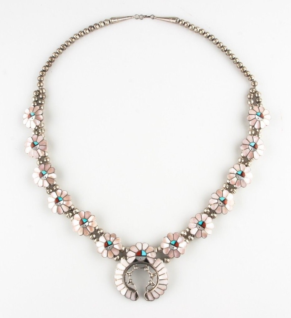Gorgeous Sterling Silver Bead Necklace w/ Inlay Accents