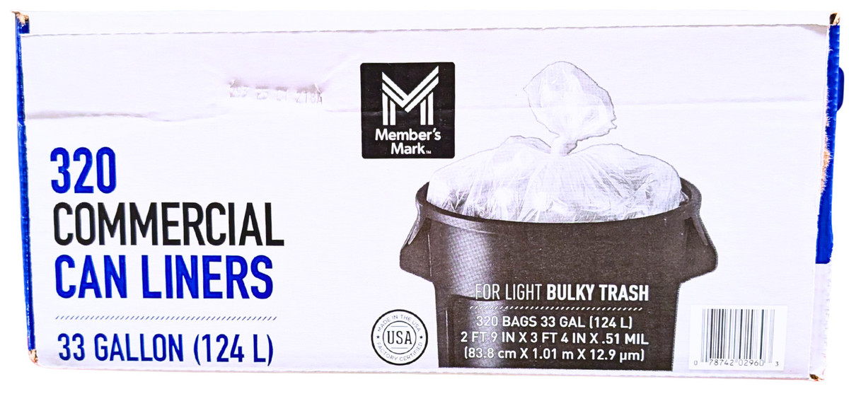Member's Mark 33 Gallon Commercial Can Liners 320 Count