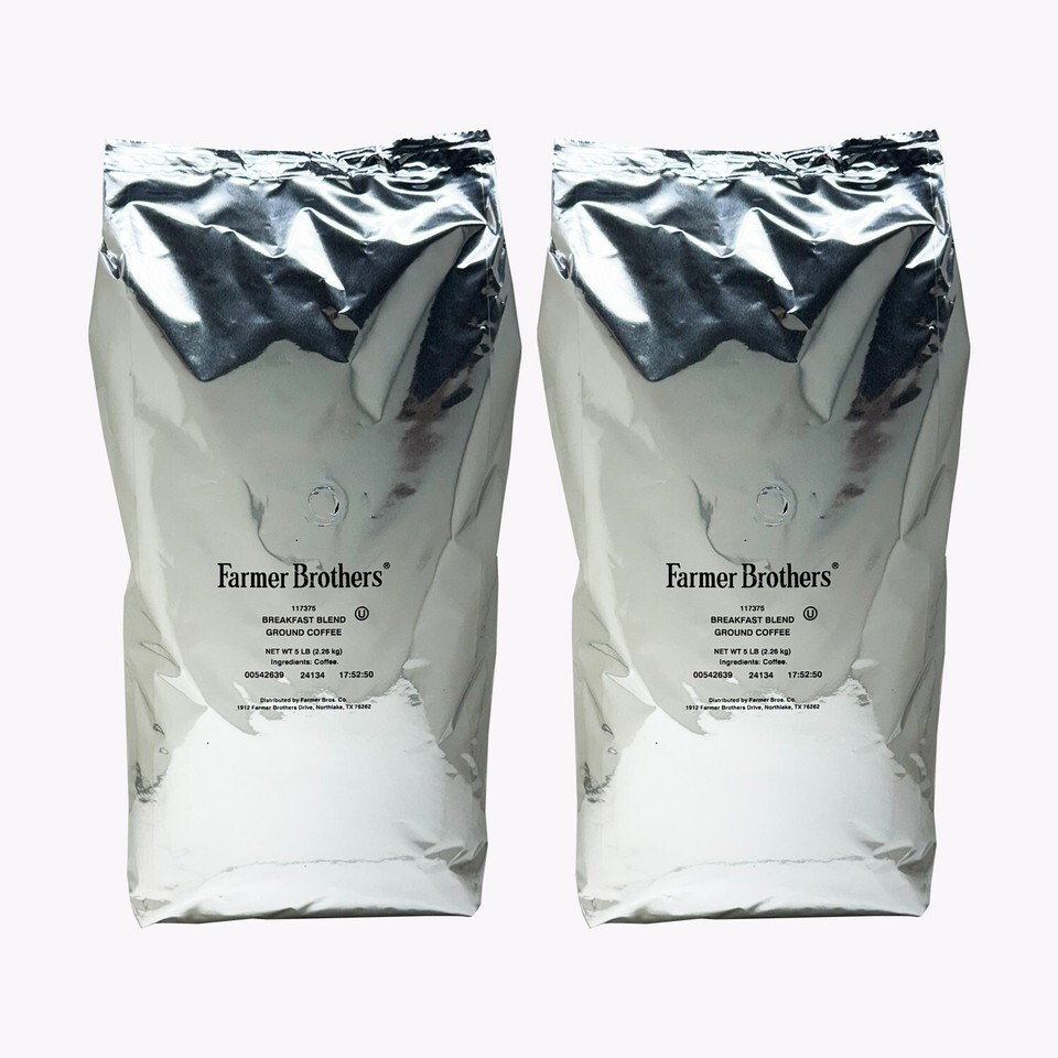 BREAKFAST BLEND - Pack of two 5 pound ground coffee Farmer Brothers Breakfast Blend service size bags with degassing valve, perfect for restaurants in the industry