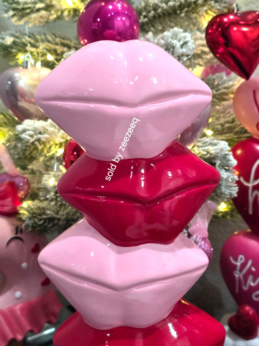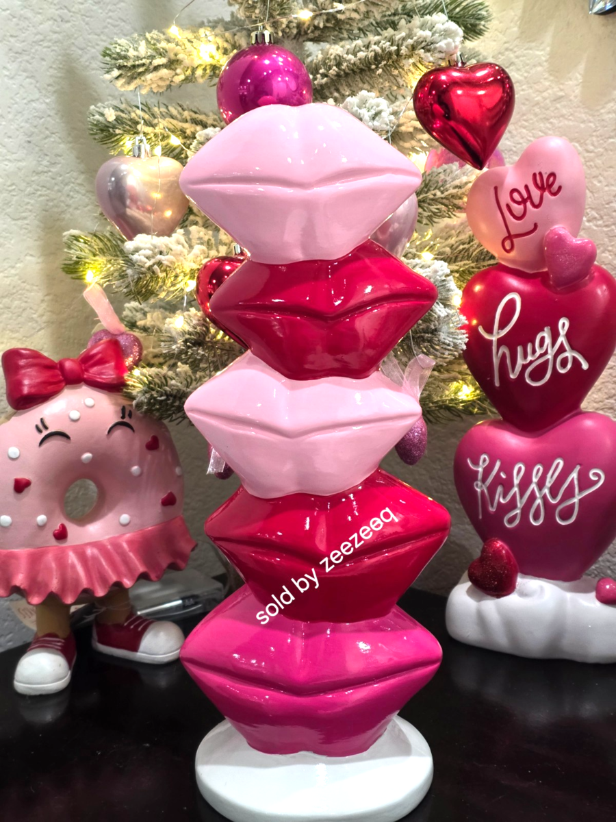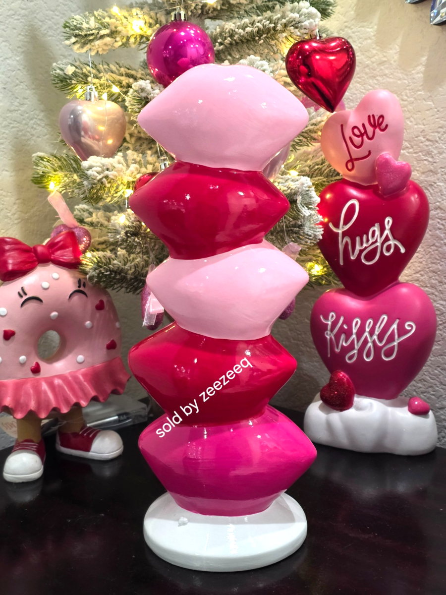 Up for sale is this gorgeous stacked lips figurine for your Valentine's Day decor. This piece will look amazing on any tabletop. The lips are pink and red and they are stacked upon each other. Made of resin and measures approx 13.5" tall. Background items are available.
