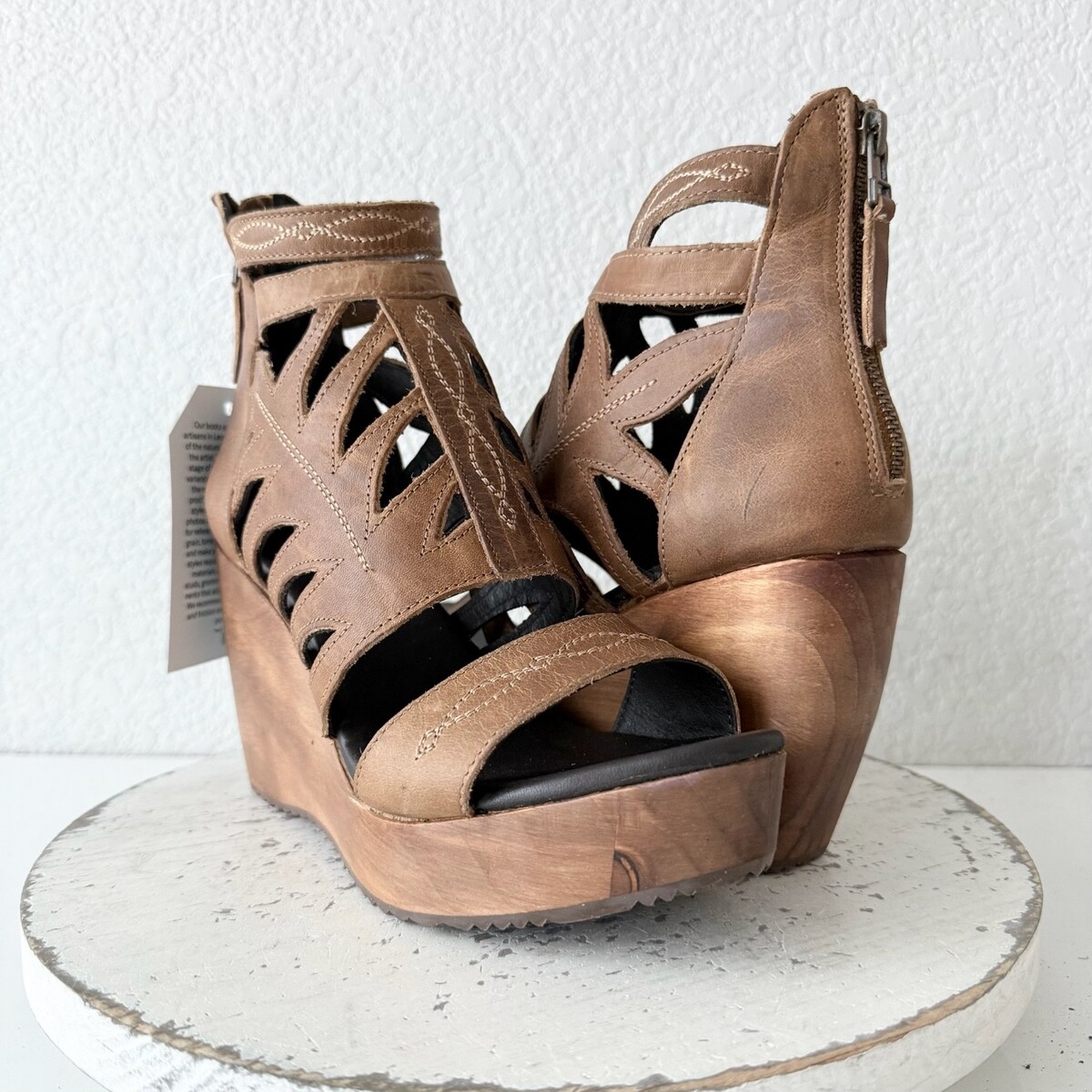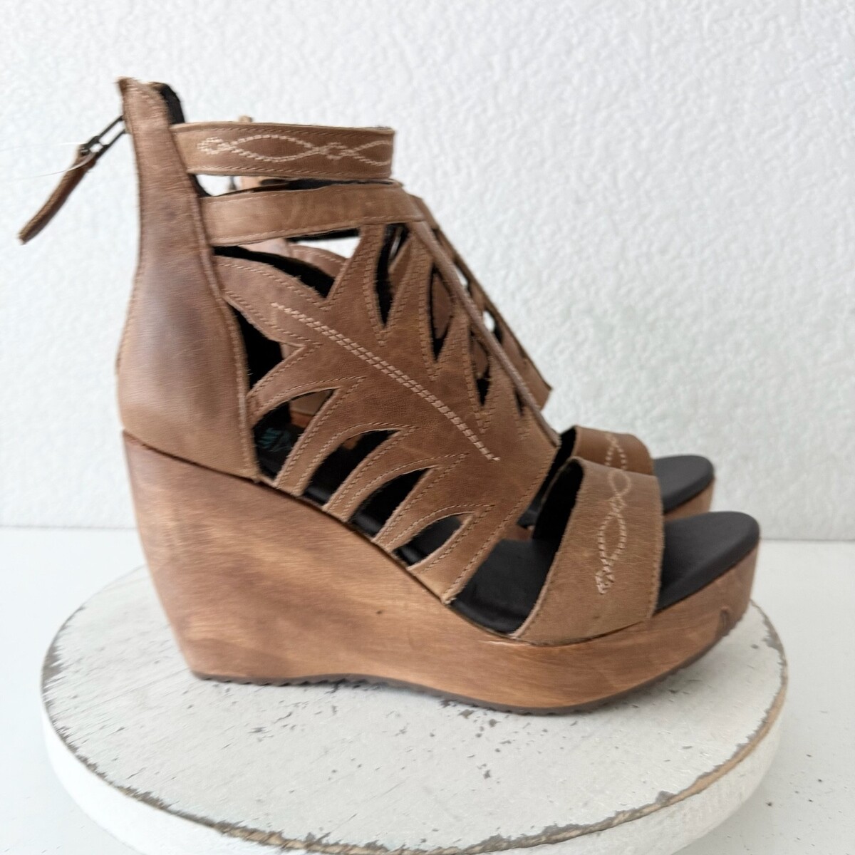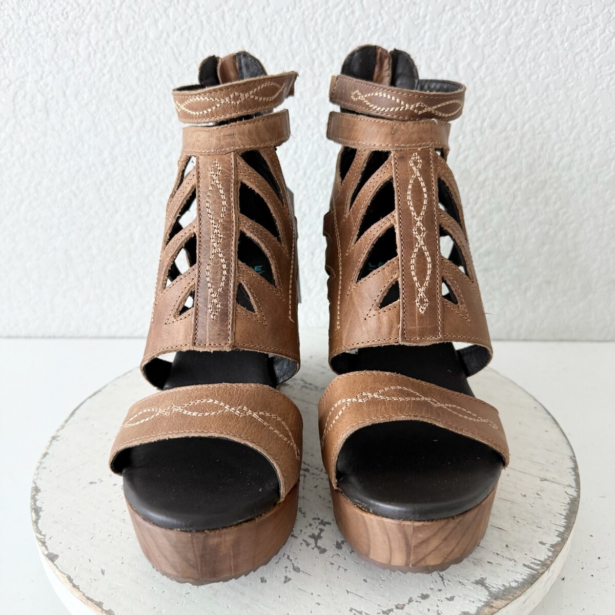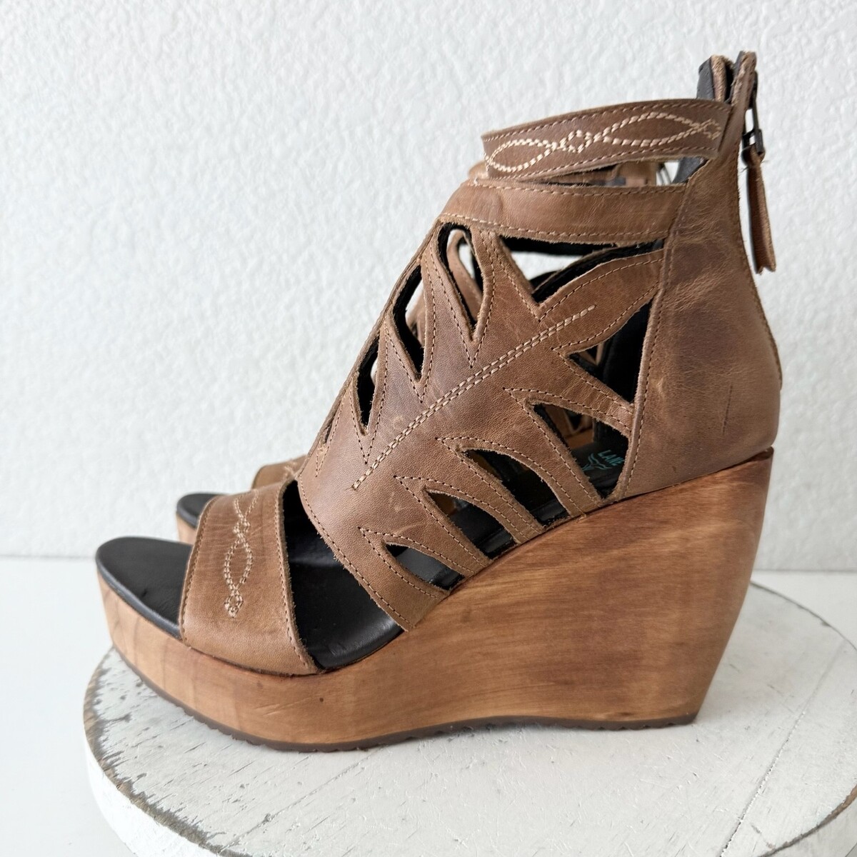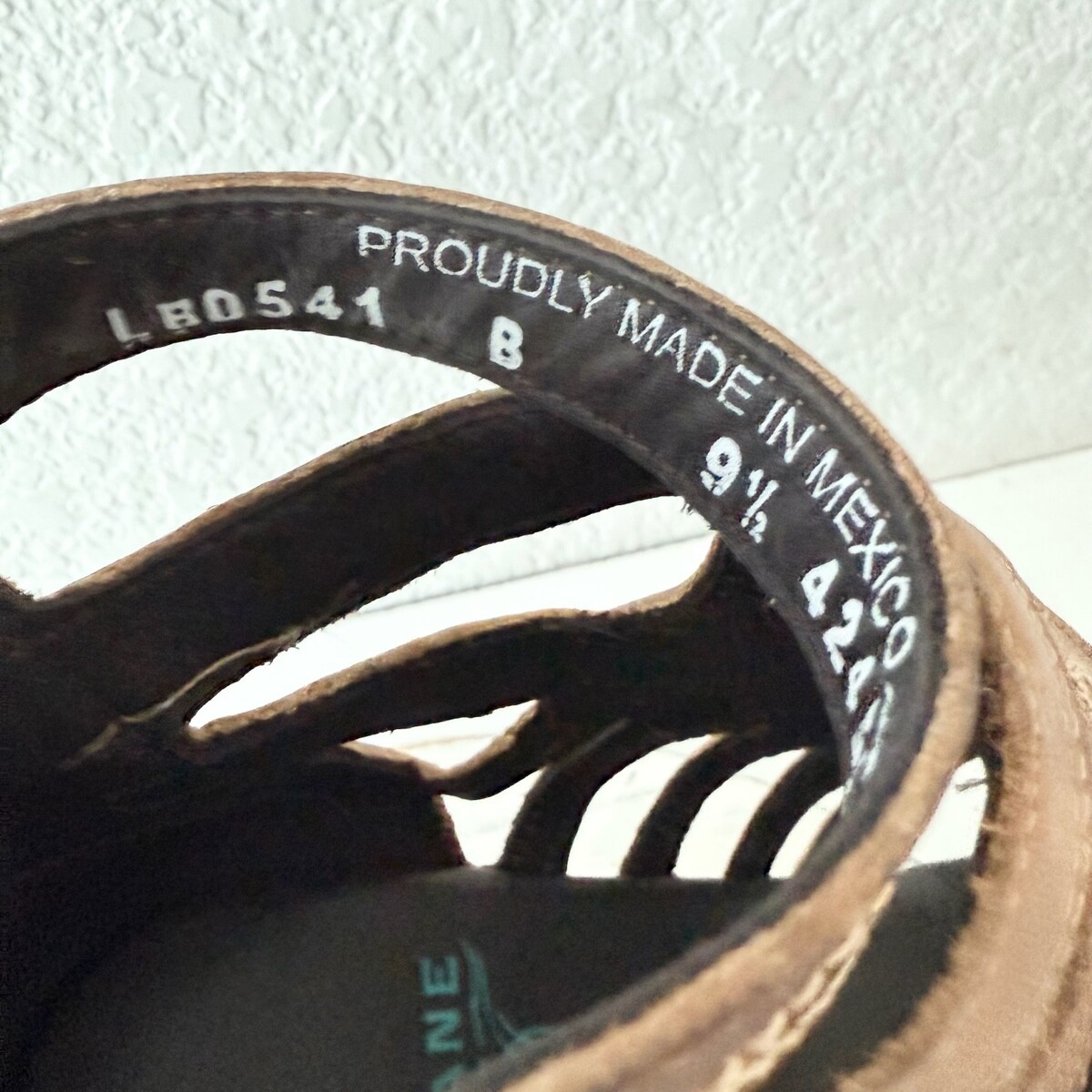 Lane Becca Leather Wedge Sandals Womens 9.5 Desert Clay Western Wooden Heel Tall