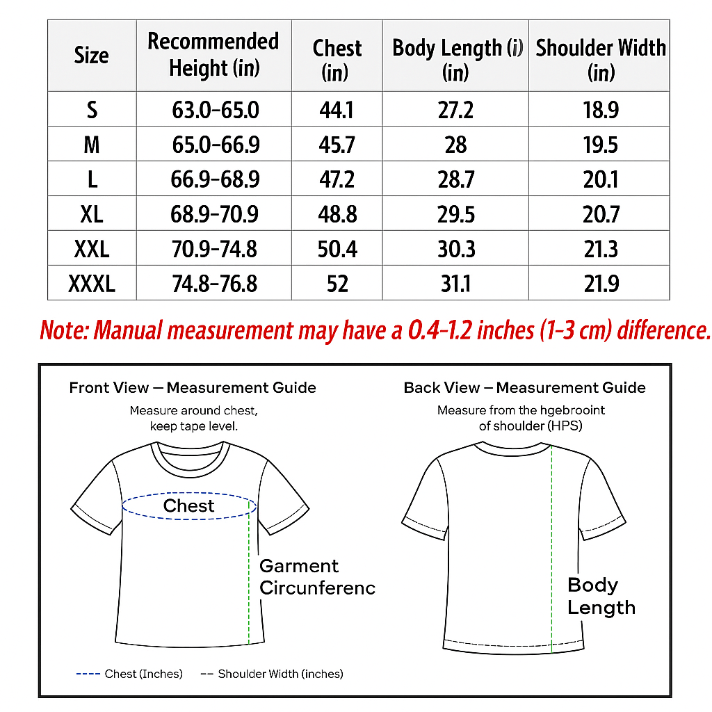 Note: Manual measurement may have a 0.4–1.2 inches (1–3 cm) difference.