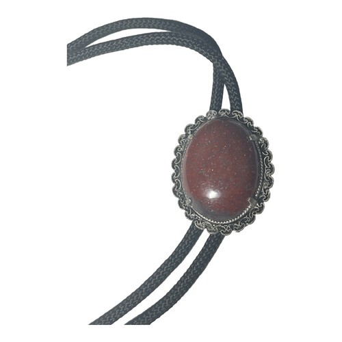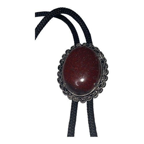 Bolo/bola tie oval silvery filigree setting Polished Red Burgundy Stone Agate