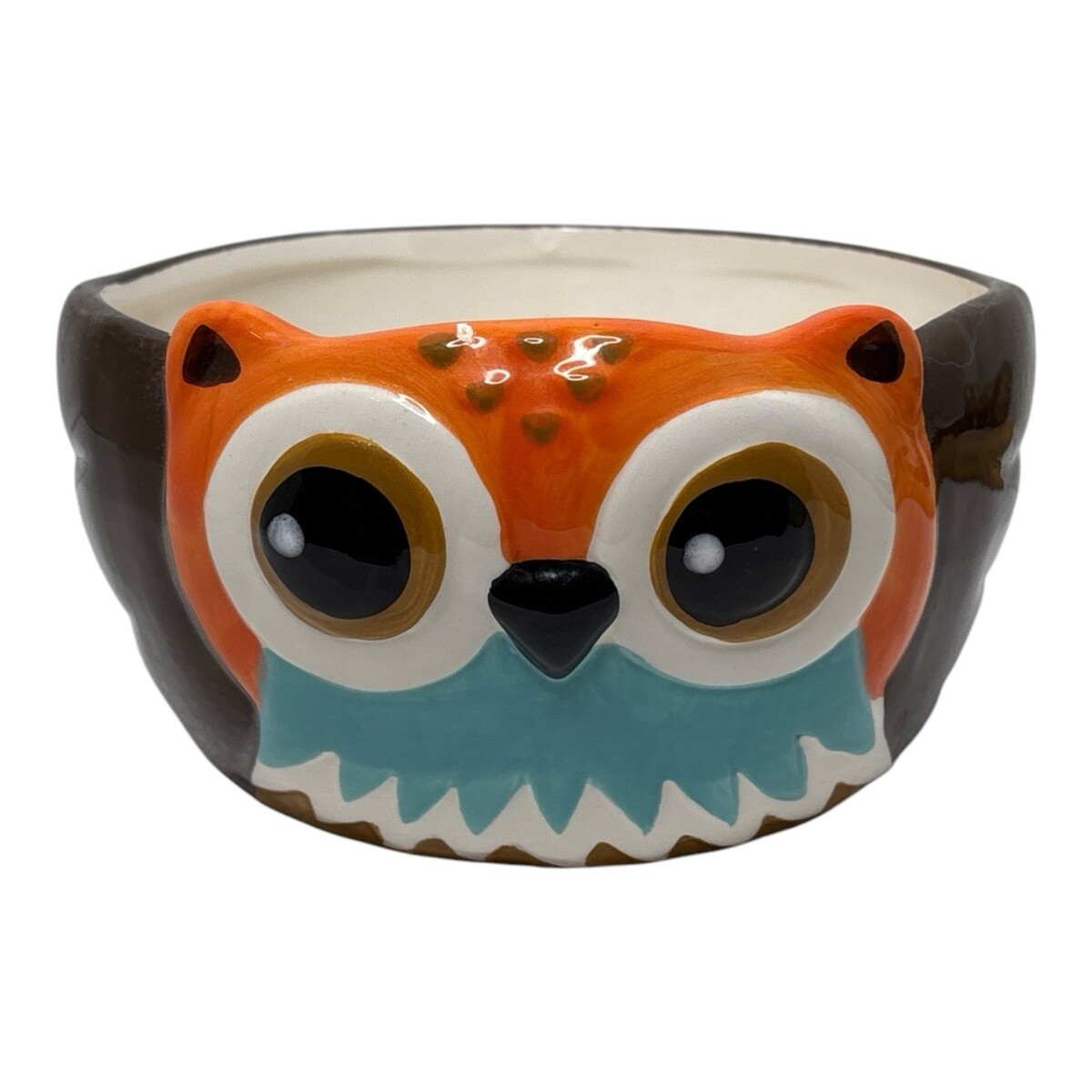 Ceramic Owl Cereal Bowl Dish 5.5” wide Bird Brown Orange Blue