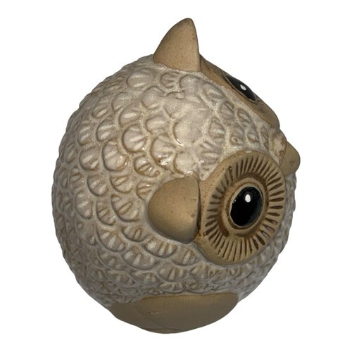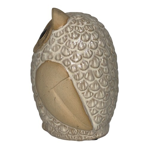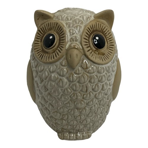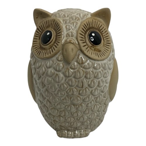 Vintage Ceramic Owl Animal White Tan Glazed Figure Pottery Stoneware Figurine