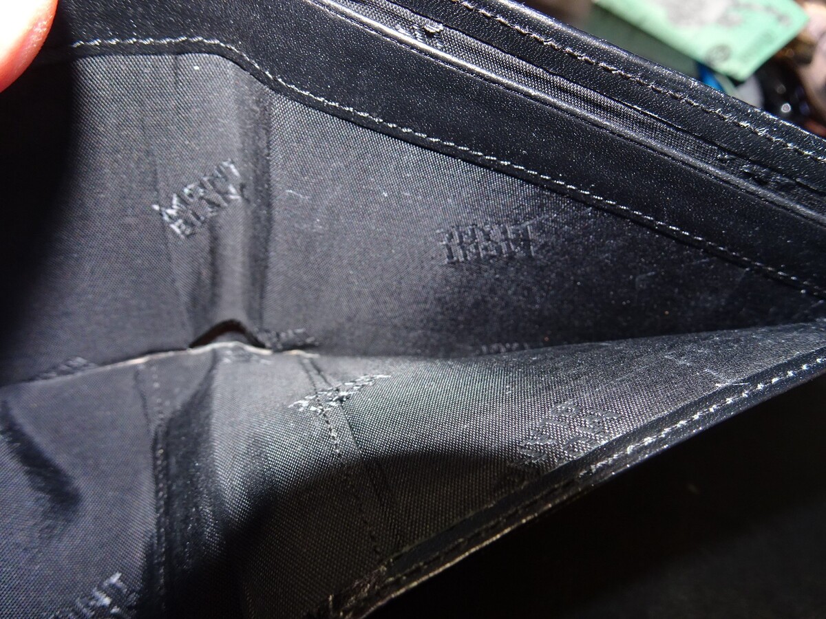 The wallet shows normal signs of use including light surface wear and natural leather patina. No tears or structural damage observed. The Montblanc snowcap emblem is intact and securely set. Interior stamps and branding are clear.