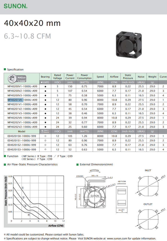 MF40201VX-1Q120-S99 SUNON MagLev 40mm x 40mm and 38 similar items