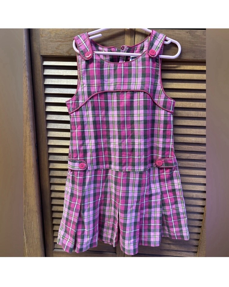 GAP Size medium 8 Girls Pink Plaid Gingham Overall pleated Dress EUC