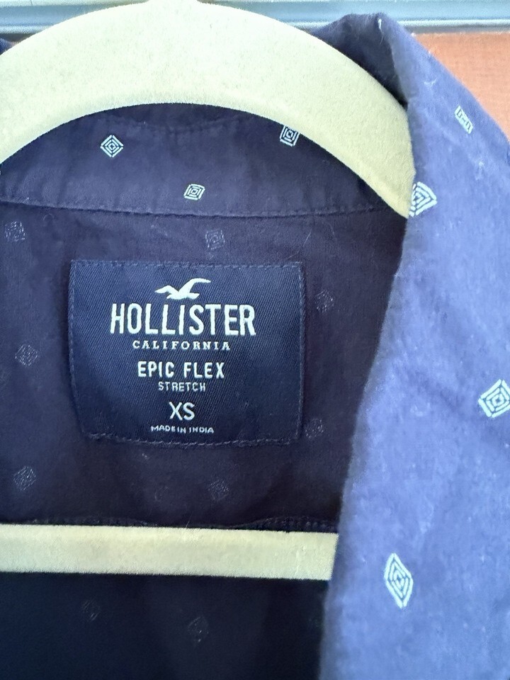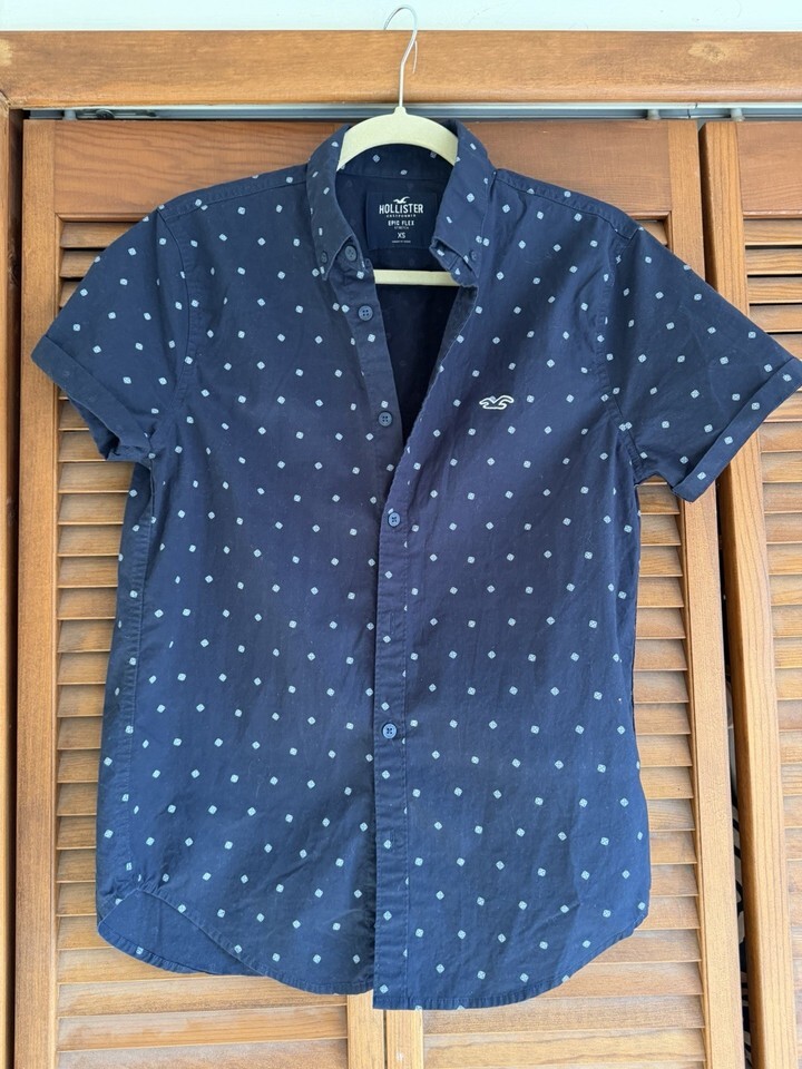 Hollister epic flex stretch men’s XS short sleeve button down shirt Navy Blue