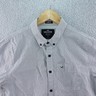 The Hollister Epic Flex Stretch Men's XS Short Sleeve Button Down Shirt in Navy Blue is a versatile and comfortable option for casual wear. Made from a blend of cotton and elastane, this woven shirt features a solid pattern with a collared neckline and button closure. The regular fit and breathable fabric make it suitable for all seasons, while the stretch material offers added comfort and mobility. Easy to care for with machine washable instructions, this shirt also includes convenient features like pockets and is suitable for various occasions throughout the year.