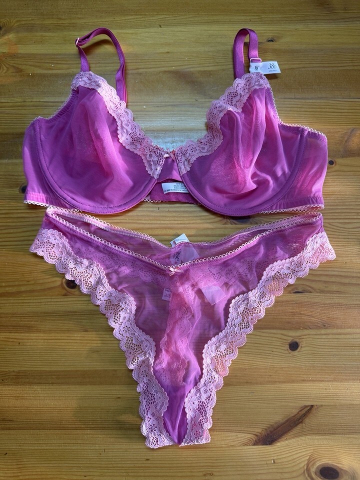 Victoria's Secret Nwt Tease Unlined Demi Bra High Leg Thong Sheer Mesh Set 38D/L