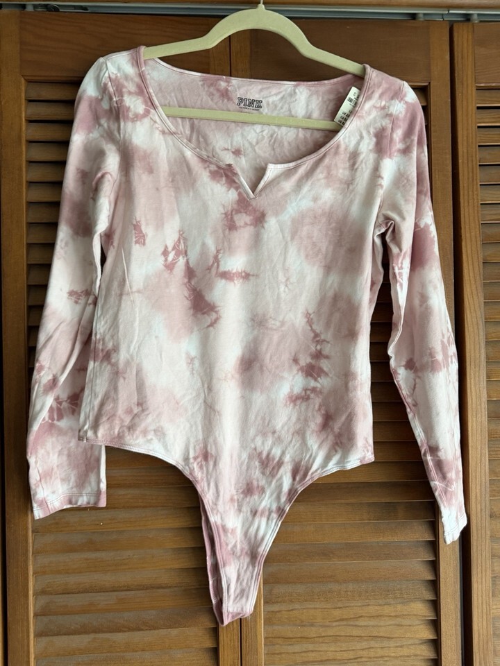 PINK Victorias secret white ombré tie tye dye bodysuit top cotton NWT