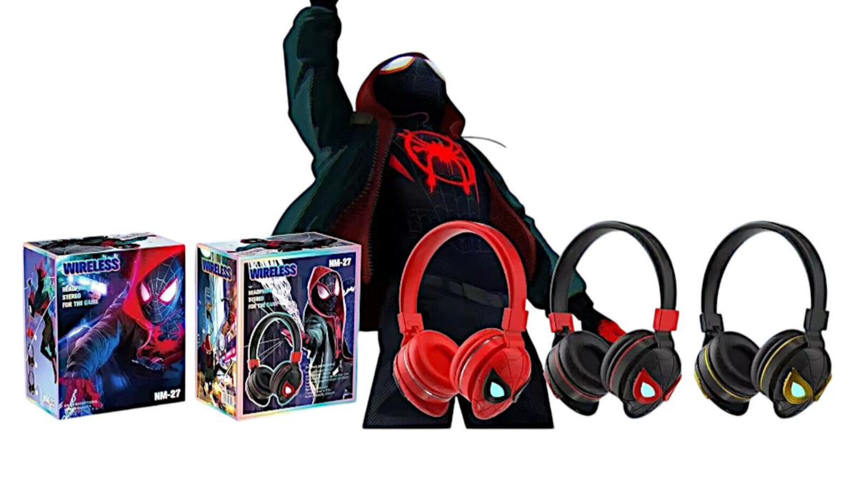 Spiderman Wireless Bluetooth Headphones Over-Ear LED Eyes Kids Gift Headset Box