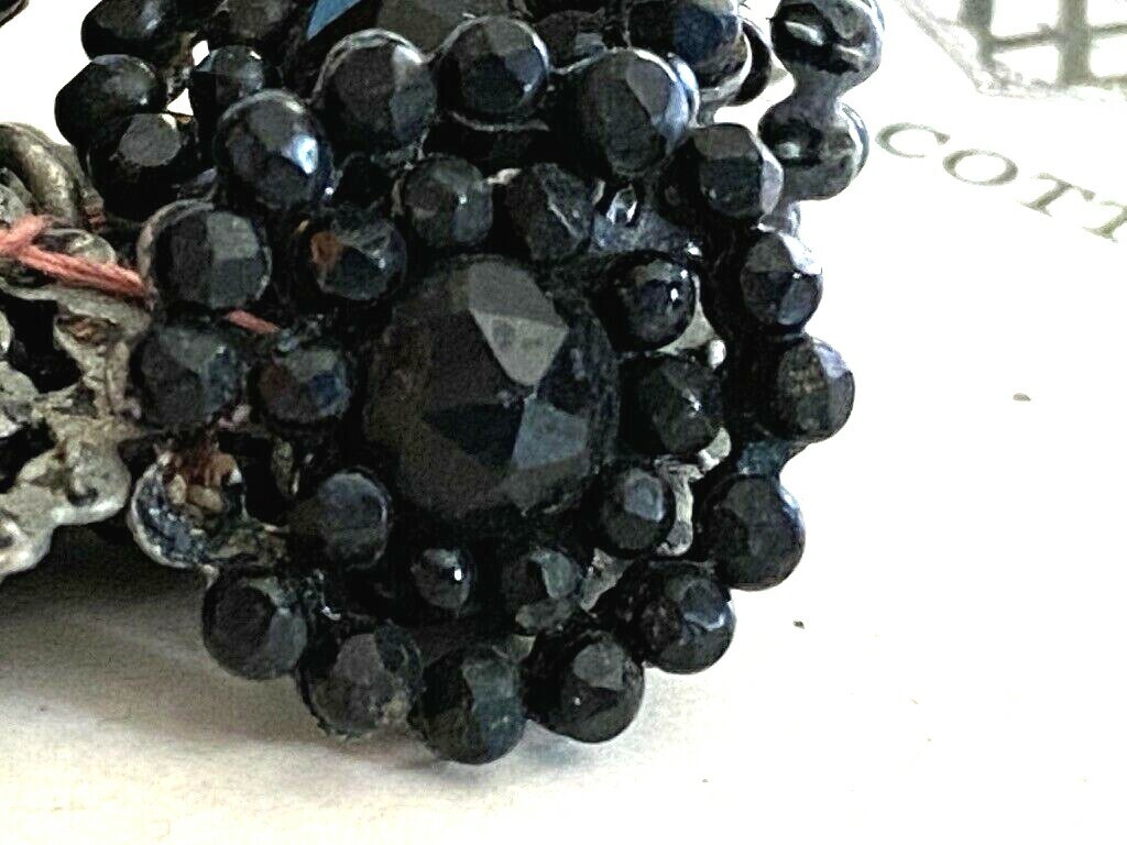 78 Antique Jet Buttons Shank BlackSome Cut Steel Victorian