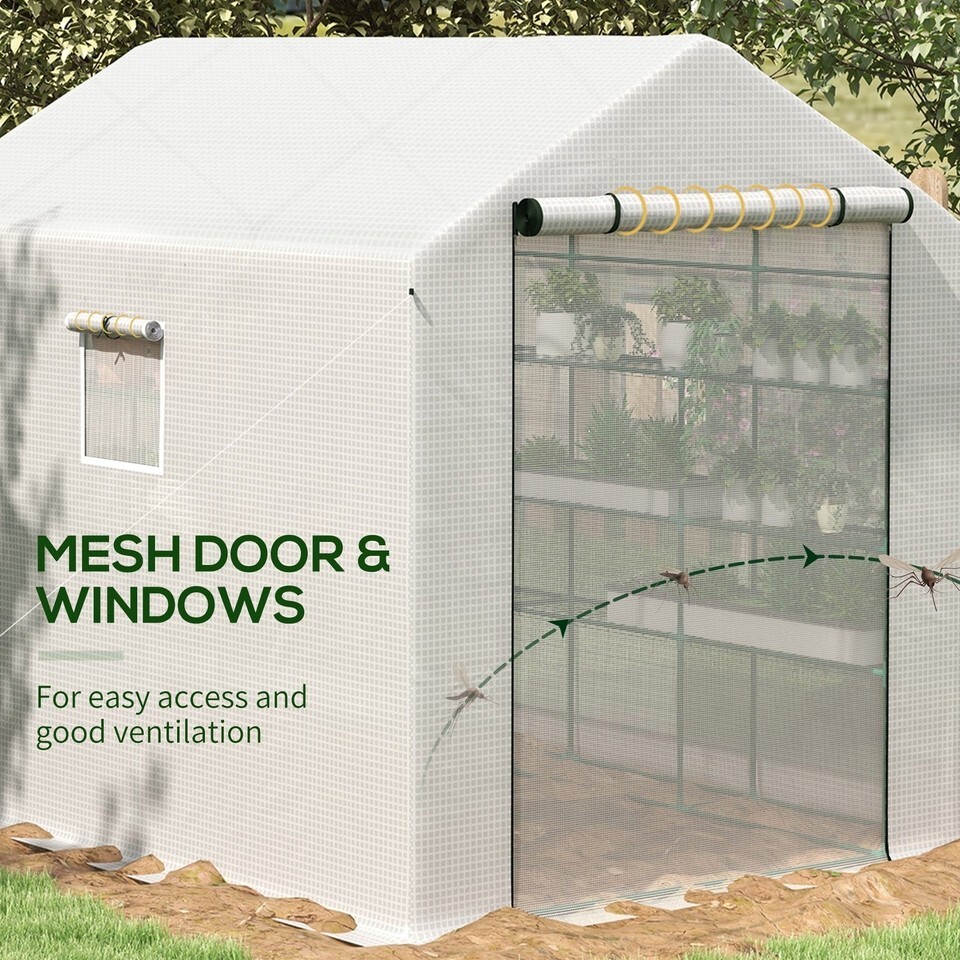 Mesh Door Windows: Our garden house features a roll-up double-layered door you can use for easy access to your grow space. Both the door and windows are lined with mesh screens to keep unwanted guests out while venting off excess moisture at the speed of your choosing.
