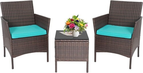 DURABLE AND STURDY: The patio bistro set made of powder coated strong metal frames structure, scratch and rust resistance. This small outdoor patio set not only offers a sleek, minimalistic look but also provide a stable structure. Plastic pad on each foot protects your floor.