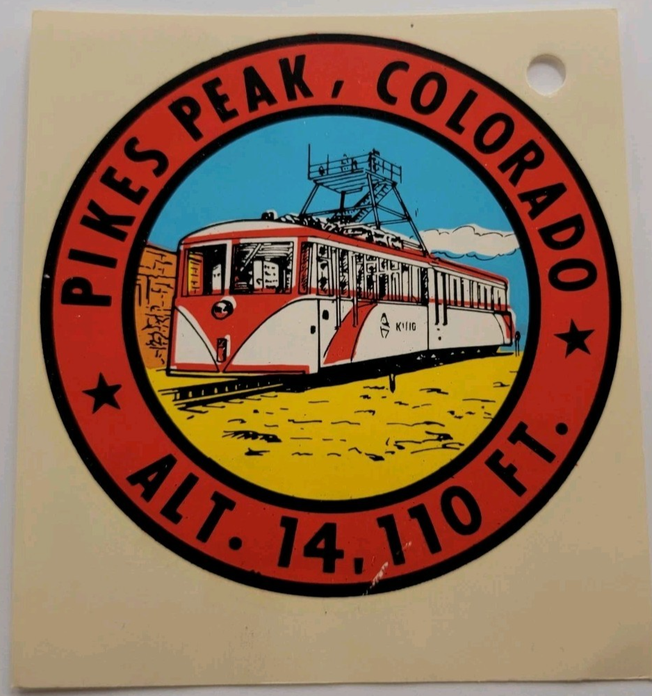 VTG Pikes Peak Colorado Travel Decal Cog Railway Mountain Train Alt 14110 Ft