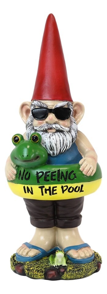 Ebros No Peeing In The Pool Lifeguard Vacation Gnome In Shades And Frog Float Statue