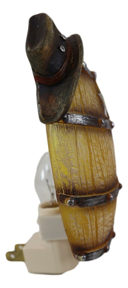 Rustic Western Star Cowboy Hat Vintage Beer Barrel Wall Plug In LED Night Light