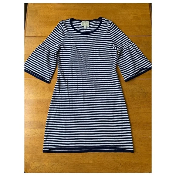 Navy and white stripes with bell sleeves. Classic stripe with a boho vibe