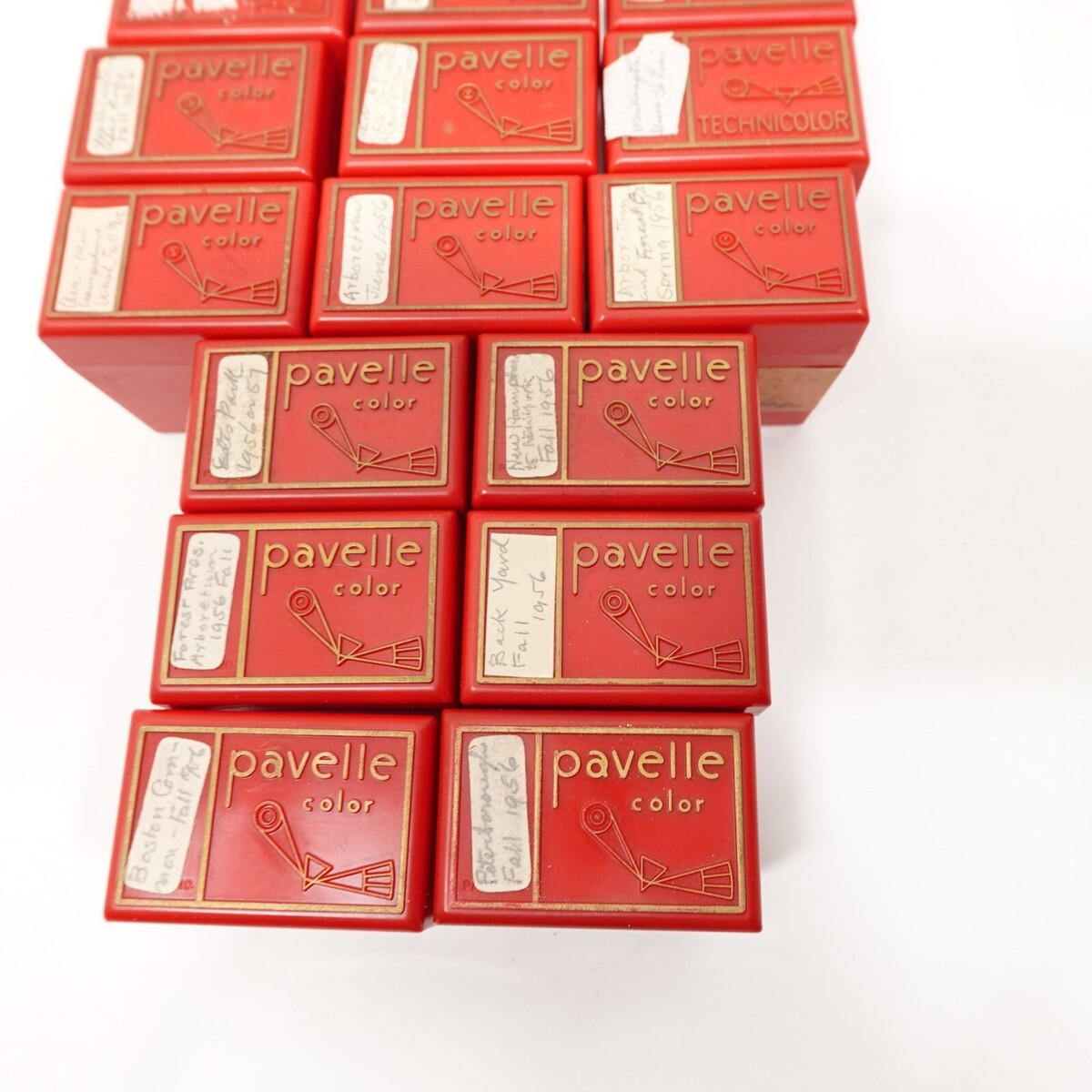 Vintage 60's Pavelle Color 2"x2" Slide Holder 15 Boxes + Lids, Red Plastic
