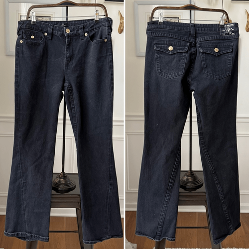 True Religion Joey Mid Rise Flap Flare Jeans Black $154 31