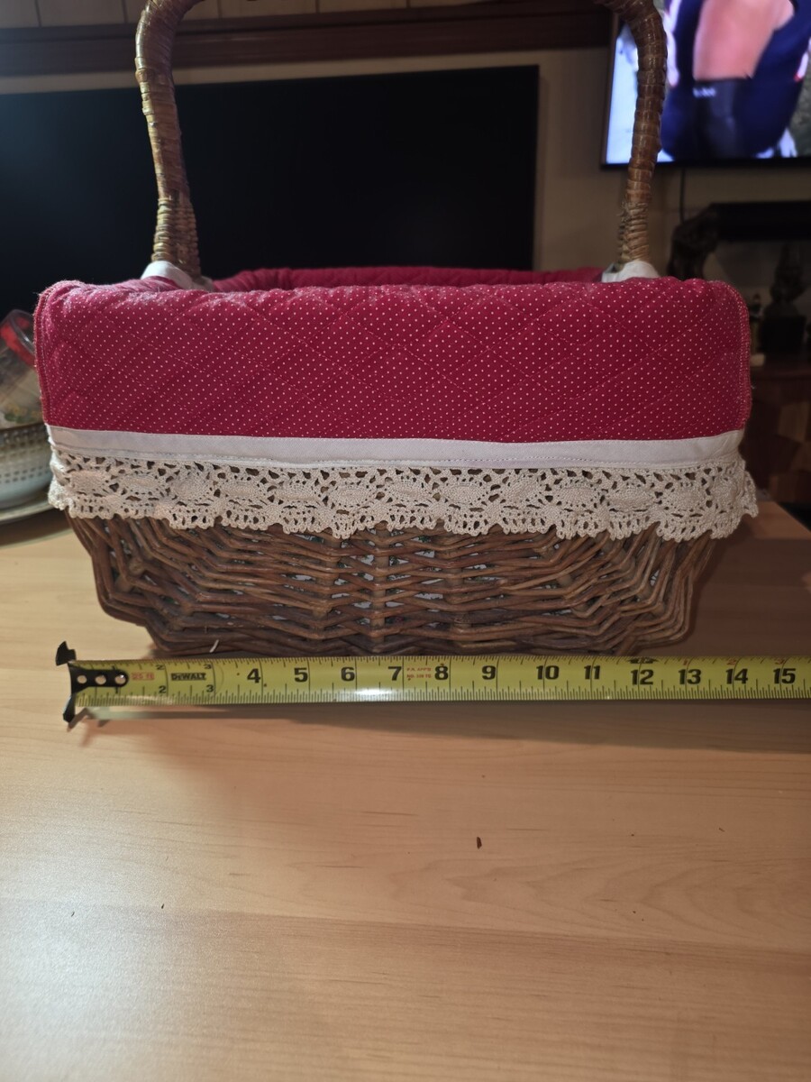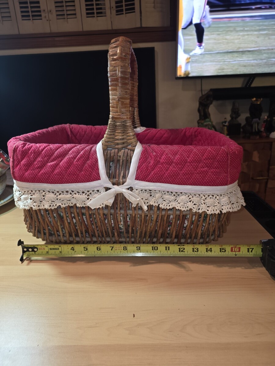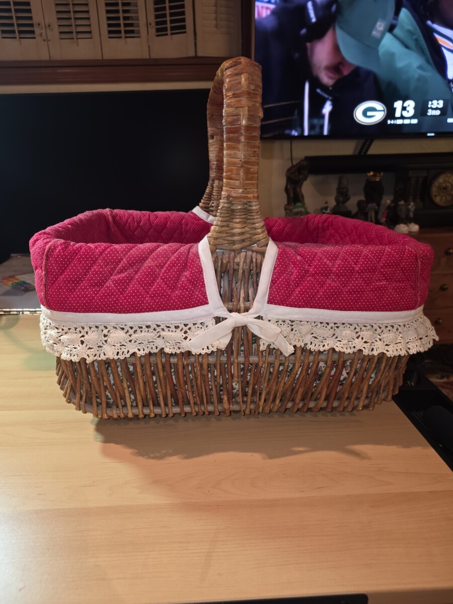 Beautiful heavy wicker basket with custom Quilted crocheted liner
